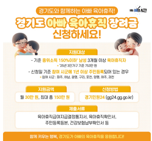 📣 아빠도 함께하는 육아에 경기도가 150만 원으로 응원합니다.
