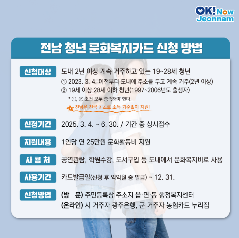2025 전남청년 문화카드 신청 방법 및 사용처 총정리